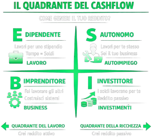 Secondo Robert Kiyosaki il mondo del reddito è diviso in quattro quadranti.